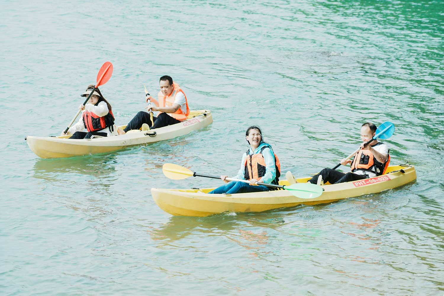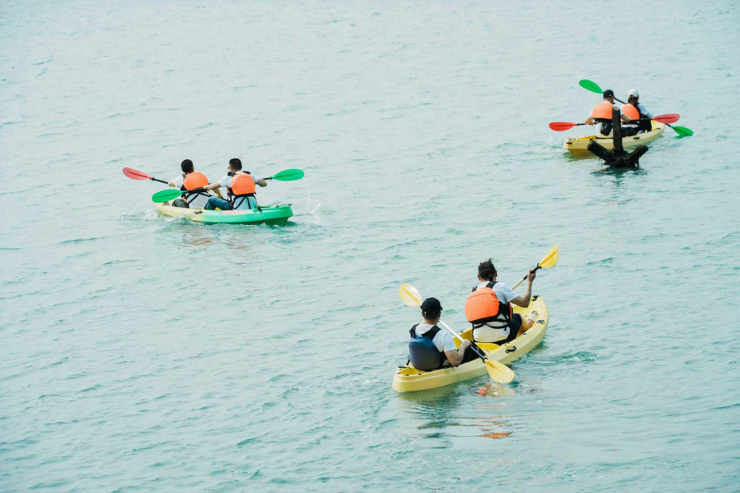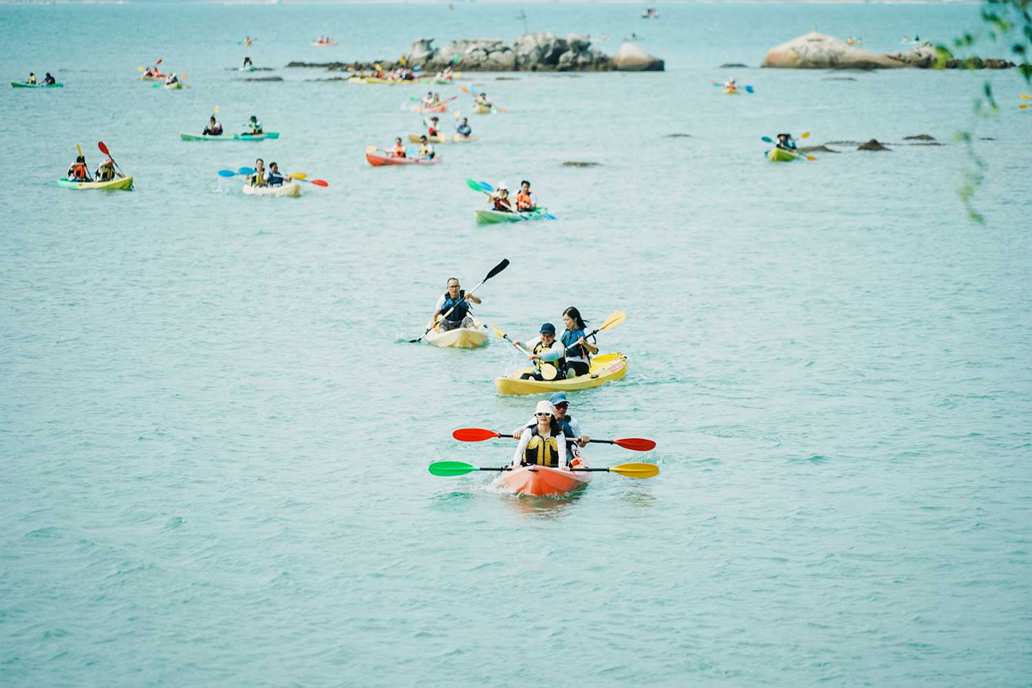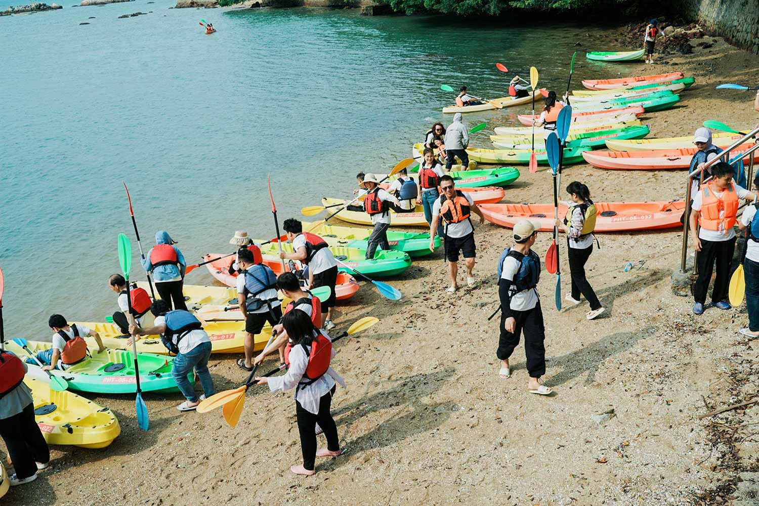 依次把艇并拢在一起,围成你们想要的形状,摆出创意满满的动感造型。 |