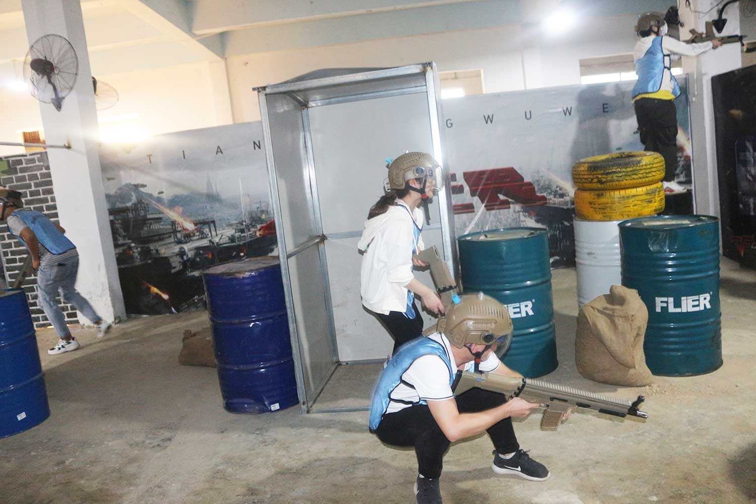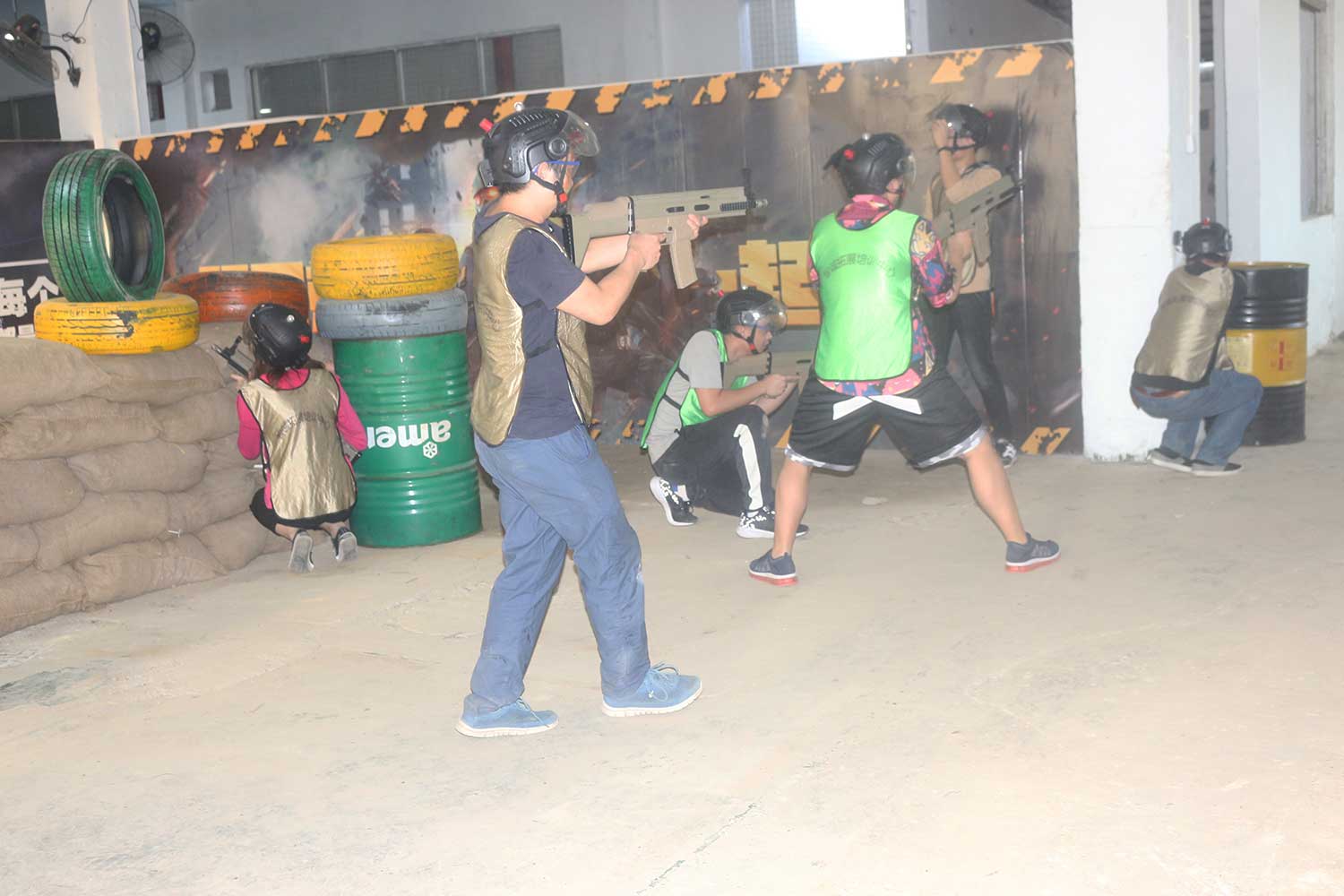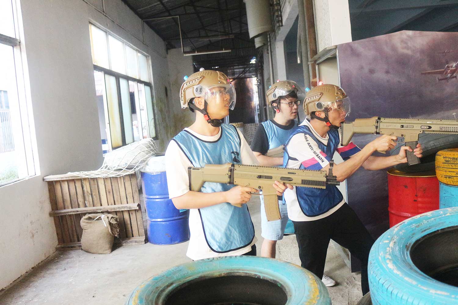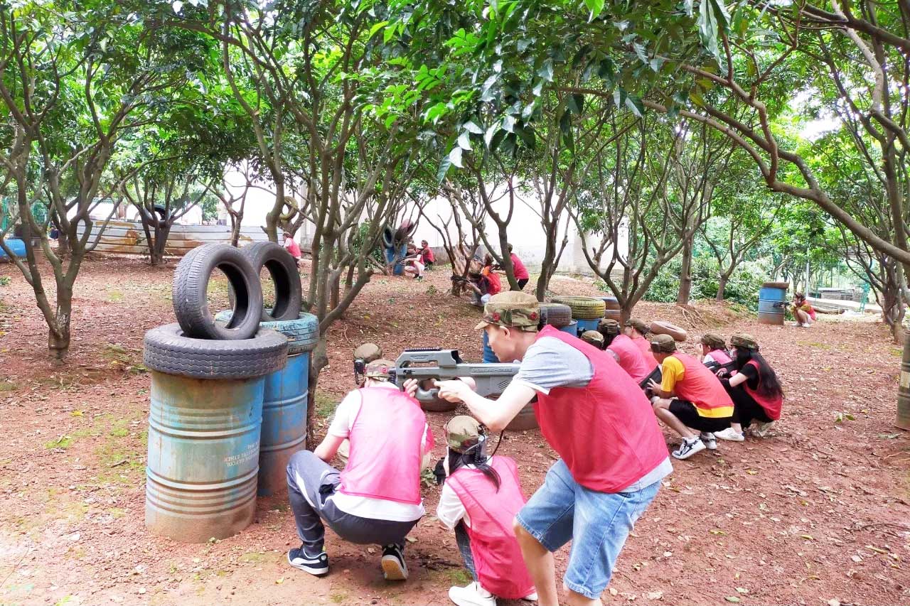 参与者身穿迷彩服,手持模拟枪在丛林、碉堡与壕沟间穿梭奋战,好比一场真实的战斗给人带来无比的刺激与成就感。