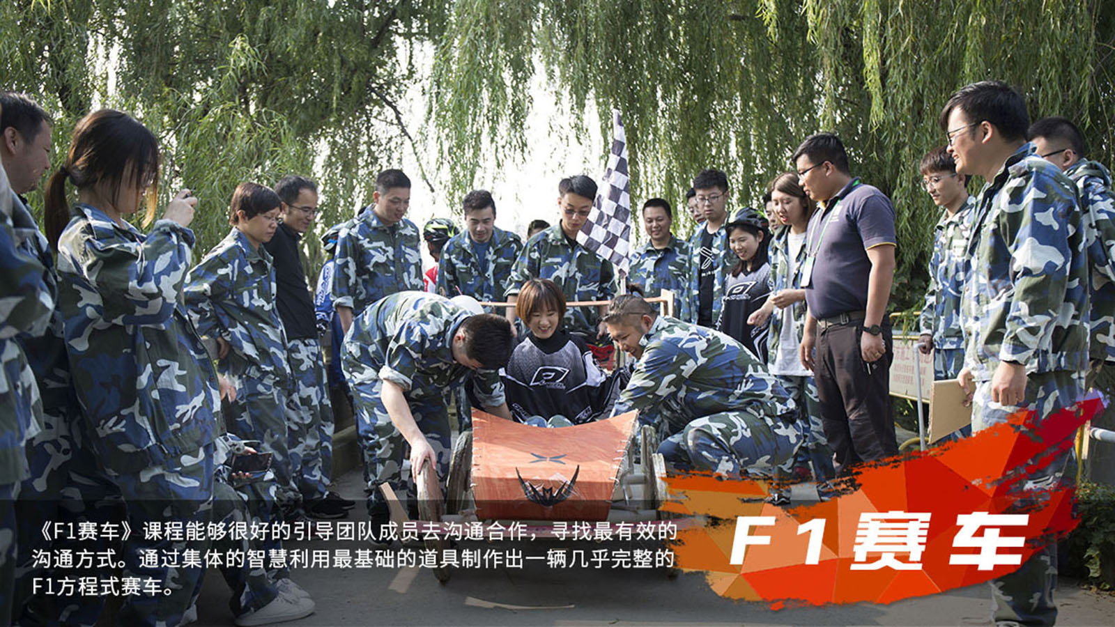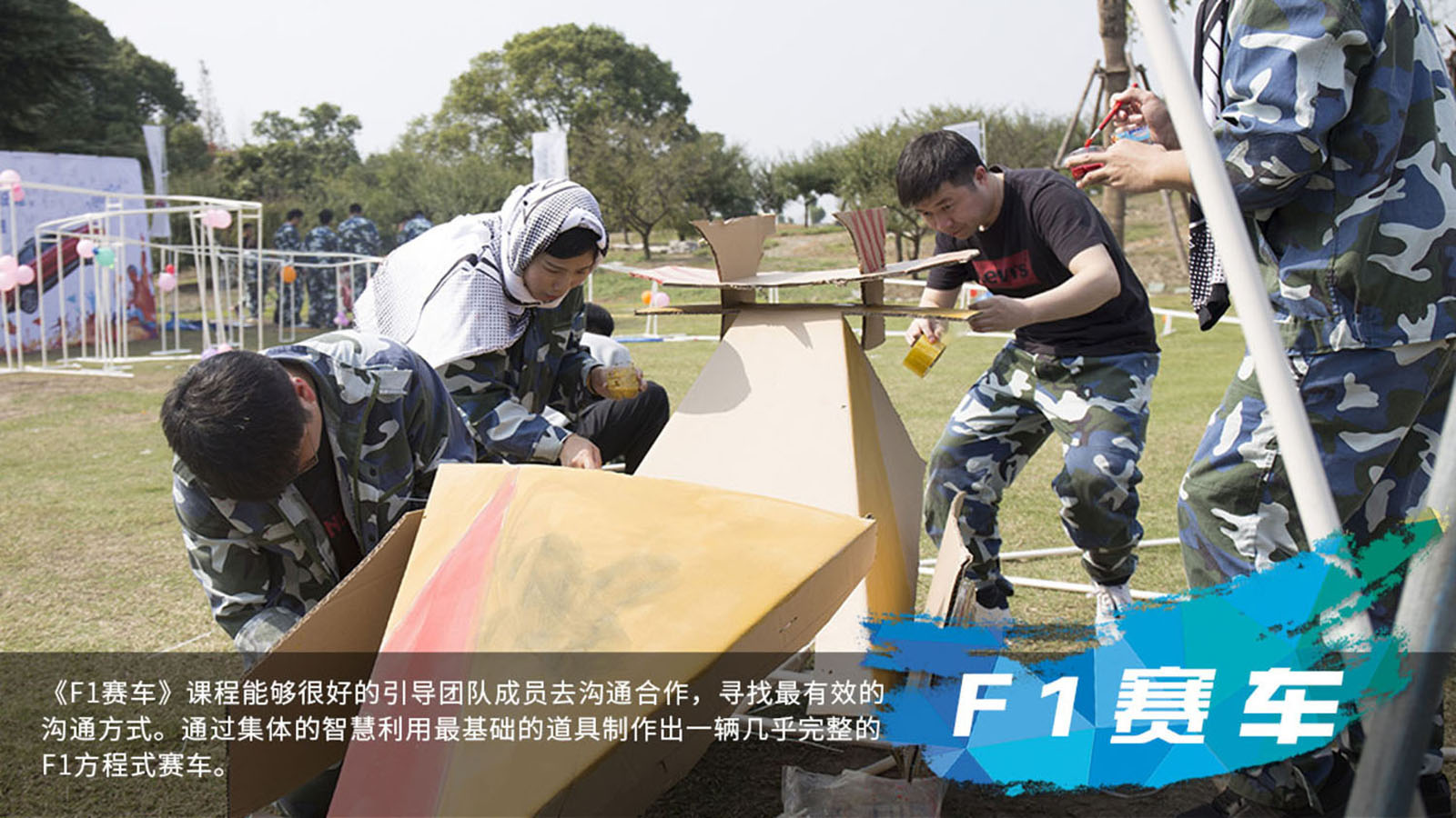 《F1赛车》课程能够很好的引导团队成员去沟通合作,寻找最有效的沟通方式。通过集体的智慧利用最基础的道具制作出一辆几乎完整的F1方程式赛车。因为它完全结合了所有团队成员的智慧,从详细的施工计划,到各个环节丝毫不差的配对,完美展现了人类力量与机械力量的同步。最后在精彩的F1赛场上各团队竭尽所能完美呈现一场F1的视觉盛宴,让团队激情在此刻燃烧。