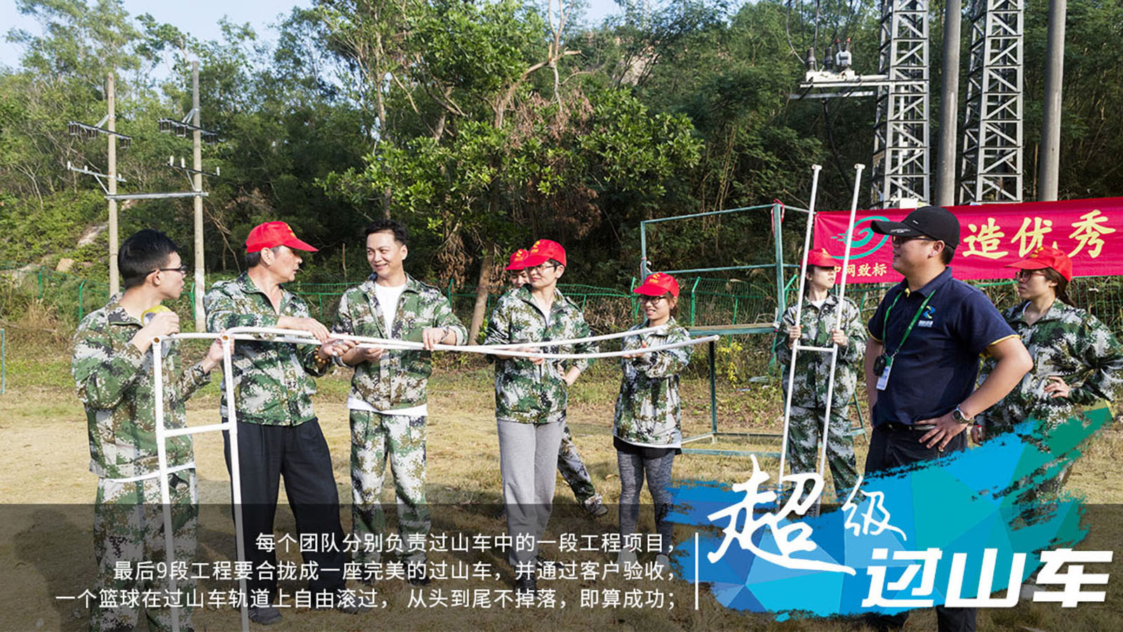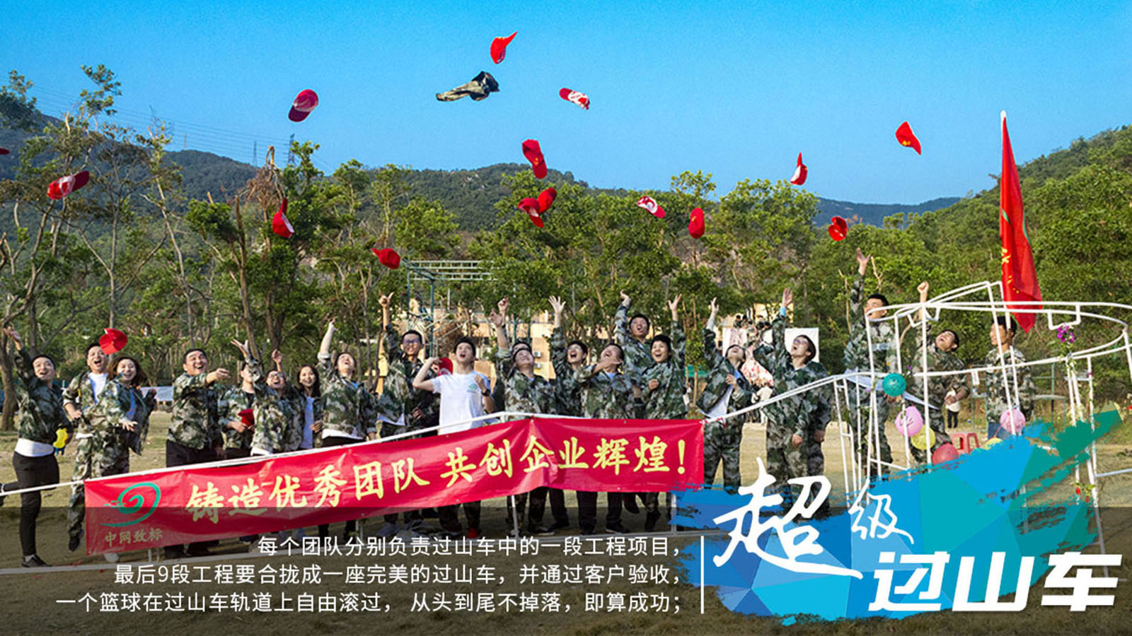 情景:一个集团公司,参加一项目建设——“建造一座过山车”,每个团队分别负责过山车中的一段工程项目,最后9段工程要能合拢成一座完美的过山车,并通过客户的验收(一个篮球在过山车上自由滚过, 从头到尾不掉落),即算成功;