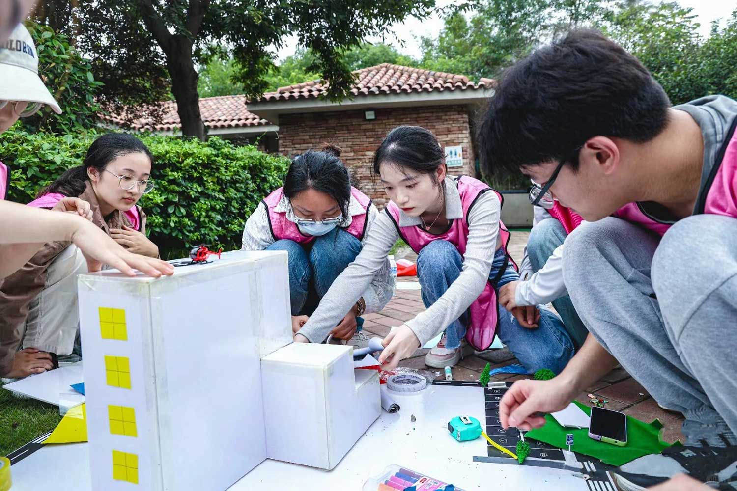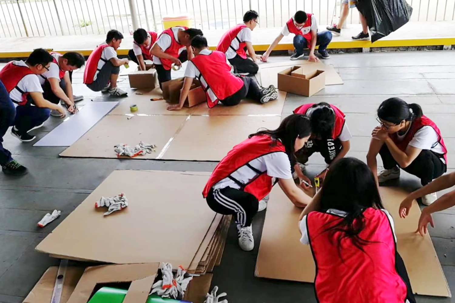 获取相映木材及基本工具,项目经理进行角色分工,队员各司其职相互信任,整个团队里成员都承担⼀定职责,共同建立“理想家园”。