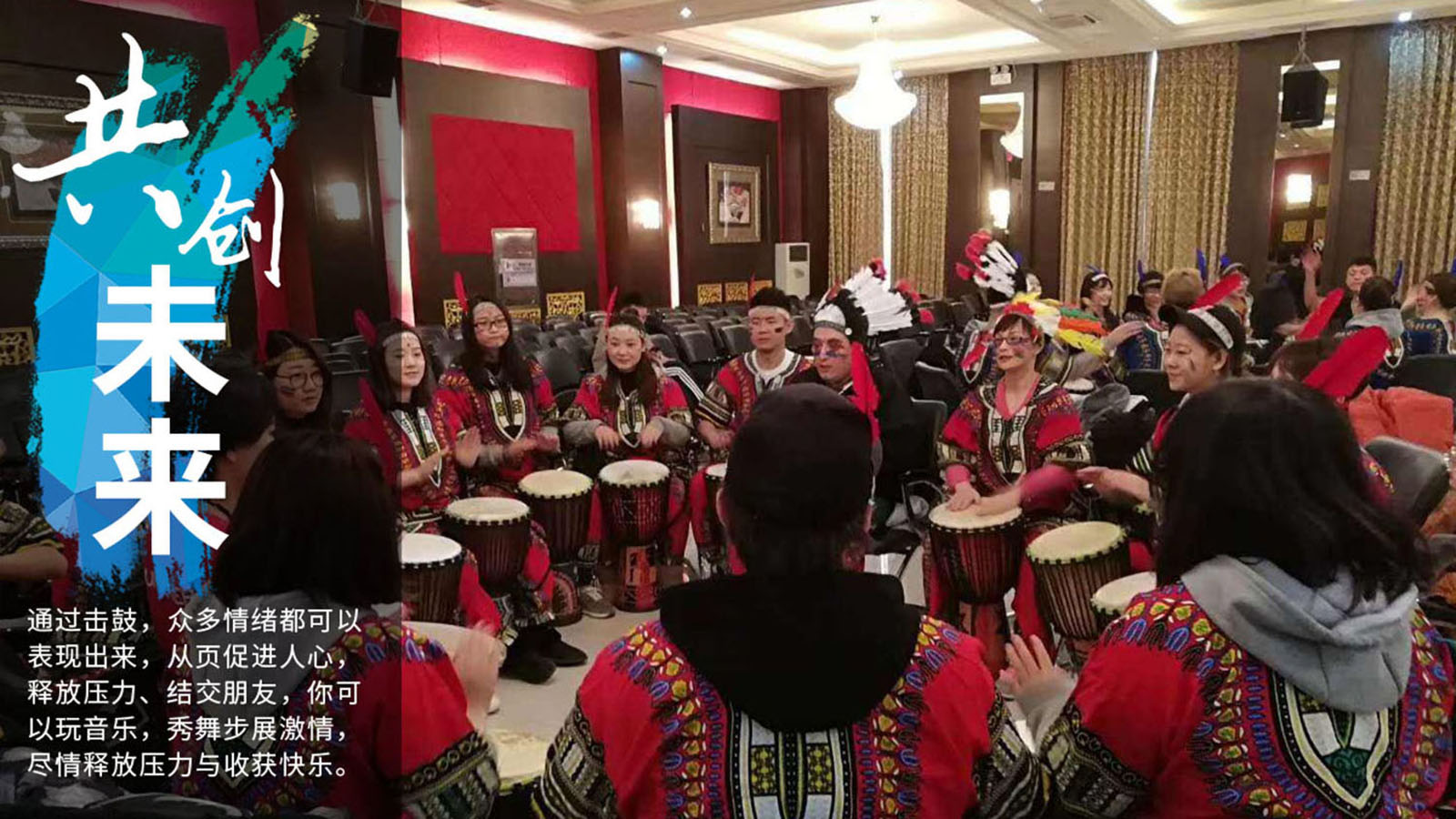 我国在古代军队自古便用来传递信息与发号施令, 音乐向来都是富有灵性的,它可以跨越一切表达出最细腻人的情感世界,用音乐来诠释团队与内心世界,用节奏感调动团队活力激发团队激情与荣誉感,每一次打击、每一个节奏,为了共同的旋律同步执行,彼此鼓舞,充满活力、热情、激情与快乐是鼓舞飞扬团建活动的特征,共同建立一个团队、一个声音、知行合一、合而不同的团队合作精神,并且以主人翁的心态推动和完成本职工作。